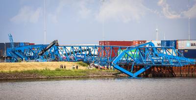 TIEL - Bij CTU Rivierenland aan De Grotewei in Tiel is een portaalkraan voor zeecontainers ingestort tijdens de storm.