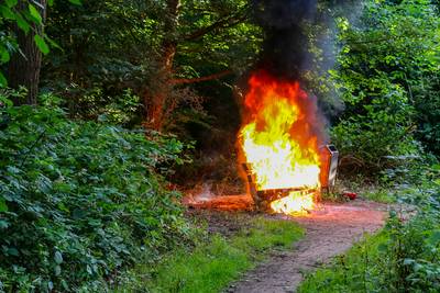 Onverlaten hebben gisteravond een bankje in band gestoken in Zutphen. Het stond in het park langs de Harenbergweg en fikte volledig af.