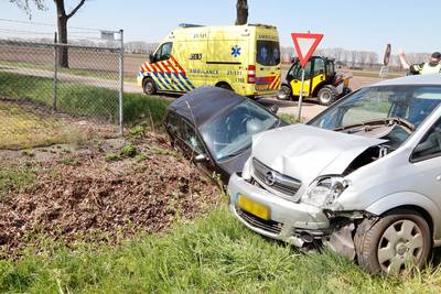 LANDHORST - Een bestuurder en een bestuurster kwamen met de schrik vrij nadat ze op de kruising van de Boompjesweg met de Fortunaweg in met hun auto's tegen elkaar waren gebotst.