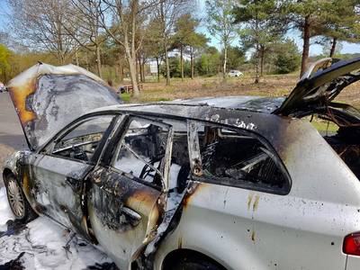 BRUINEHAAR - Een personenauto is zondagochtend aan de Driehoeksweg in Bruinehaar volledig uitgebrand nadat het voertuig in brand vloog tijdens het rijden. Niemand raakte gewond, de auto moet worden afgesleept.