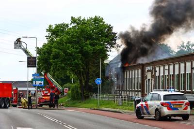 ENSCHEDE - In een bedrijfspand aan de Hendrik ter Kuilestraat in Enschede is dinsdagochtend brand uitgebroken. De brandweer rukte met meerdere eenheden uit om te blussen. Boven Enschede is een grote rookwolk te zien.