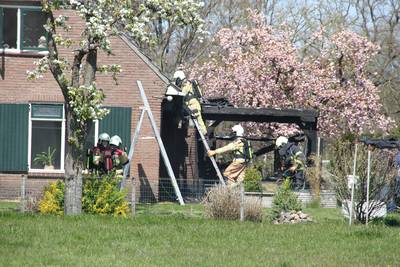 HOLTEN - Aan de Okkenbroekseweg in Holten is brand uitgebroken onder een overkapping. De brand is overgeslagen naar het dak van de woonboerderij naast de overkapping.
