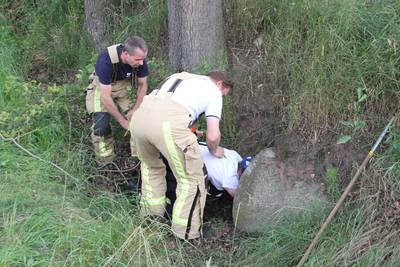 ENTER/MARKELO - De brandweer uit Enter heeft zaterdagmiddag een kat gered, die weggekropen was in een rioolbuis langs de Enterbroekweg in Markelo. Enkele voorbij rijdende fietsers hoorden het beestje klagelijk miauwen.
