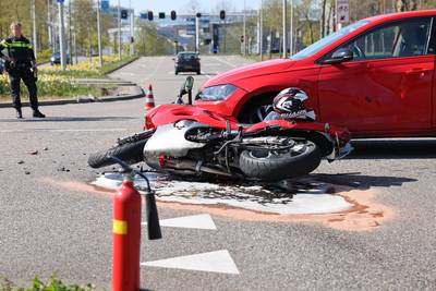 Eem motorrijder is dinsdagmiddag gewond geraakt bij een botsing met een auto op de kruising van de Burgemeester Roelenlaan met de afrit A28 Zwolle-Centrum. De weg is afgesloten richting Zwartewaterallee.